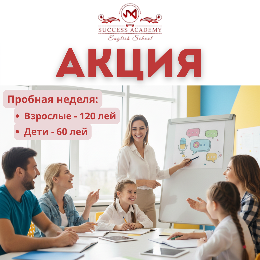Мечтаете свободно общаться на английском, румынском или немецком? Школа иностранных языков Success Academy объявляет о специальной возможности для всех новых студентов. Откройте для себя нашу уникальную методику на пробной неделе! Success Academy верит: чтобы начать говорить, не нужно заучивать бесконечные правила. Наш девиз: «Хватит учить, начните говорить!» Именно поэтому мы уделяем 80% урока живой речевой...